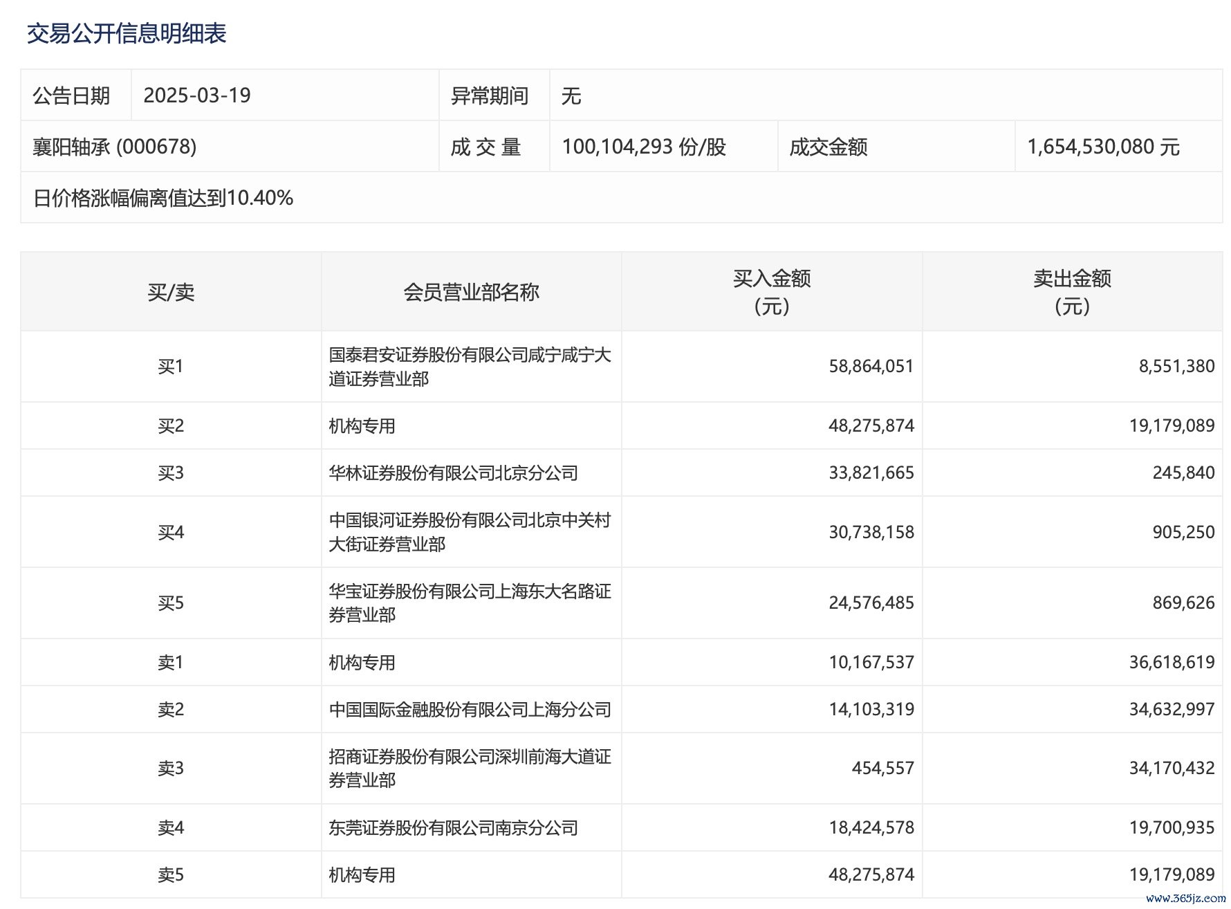 襄阳轴承今日涨停,1家机构专用席位净买入2909.68万元襄阳轴承今日涨停,1家机构专用席位净买入2909.68万元